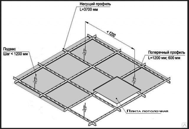 Реечный подвесной потолок собирается из оцинкованных или алюминиевых реек. Конструкция представляет собой подвешенные в одной плоскости, параллельные профили (траверс) на специальных подвесах; и непосредственно рейки, вставляющиеся в пазы траверса.